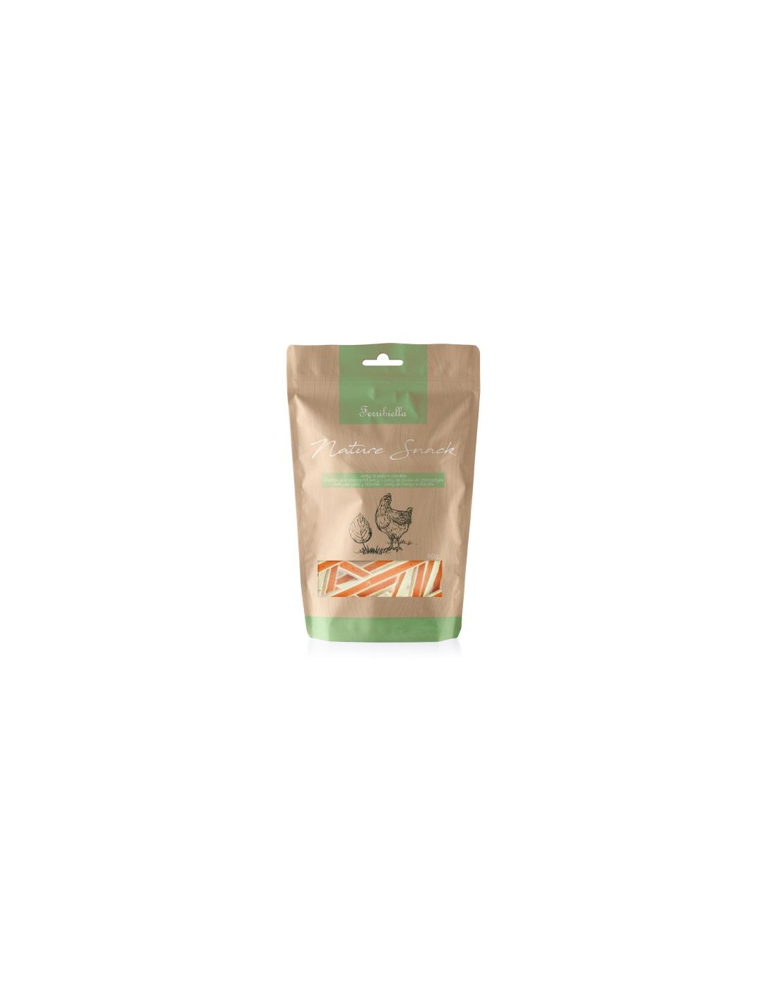 NATURE SNACK LECCORNIA PER CANI BASTONCINI JERKY DI POLLO E CLOROFILLA CONFEZIONE DI GR 100.Gli snack di Ferribiella per cani, in formati da 80 gr. Confezionati in una pratica busta, richiudibile per mantenere al meglio gli snack dei tuoi amici a quattro zampe. Ingredienti: Pollo 77%, Pesce 15%, glicerina 2%, proteine del pisello 3%, farina di patate 2% Alimento complementare per cani, non sostituisce la regolare alimentazione
